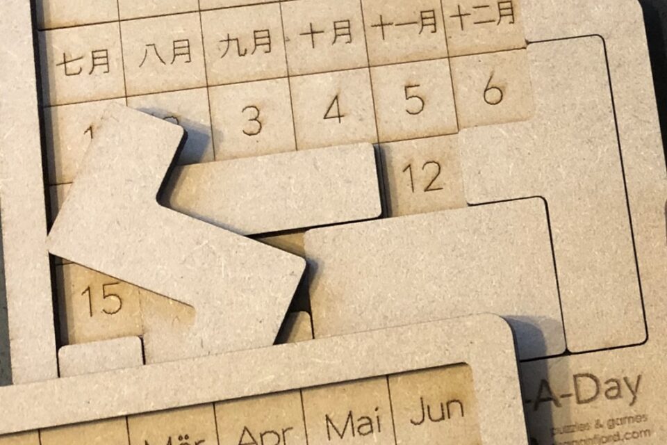 Today, we’ve added German and Japanese versions to our catalog to thank our customers who have made A-Puzzle-A-Day so popular in Germany and Japan. Gerd loves Japanese kanji, and Mike is a big fan of umlauts!