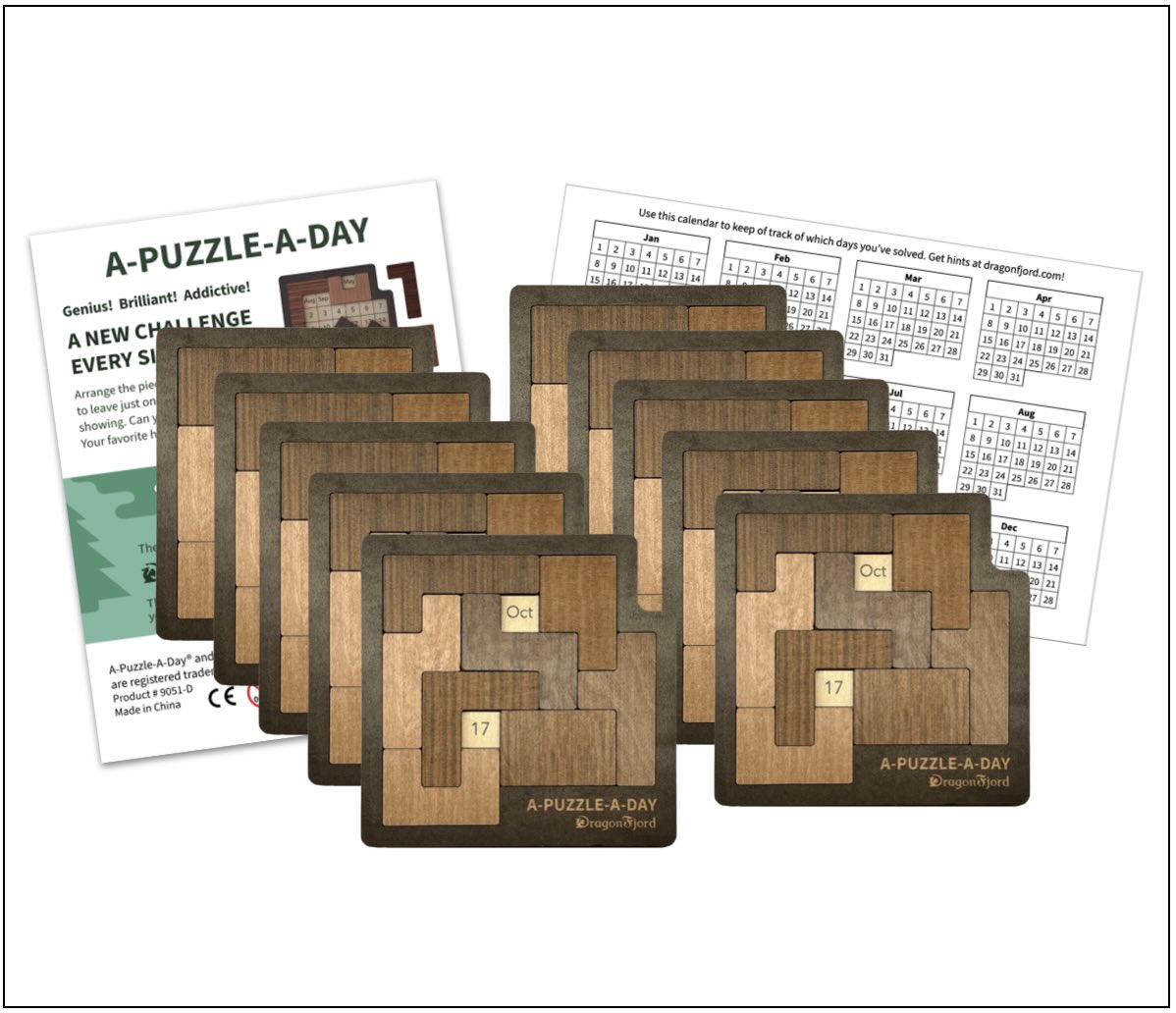 A-Puzzle-A-Day is the best-selling brainteaser with over 24,000 possible solutions – it’s a fresh challenge every day. A-Puzzle-A-Day captivates puzzle-lovers of all ages making it a perfect fit for toy stores, gift shops, online retailers, fundraisers, and individuals who want to earn extra income.