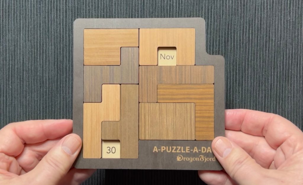 A-Puzzle-A-Day is the ingenious brainteaser that gives you a new challenge every single day. Simply arrange the 8 pieces into the frame to leave today’s month and day showing. Every day is possible!