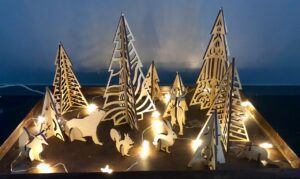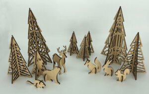 The set consist from 8 trees and 6 animals. The trees are in three different sizes with different designs. There is a polar bear, a deer, a fox, a squirrel, a rabbit and a mouse, straight from the Norwegian forest to your home.